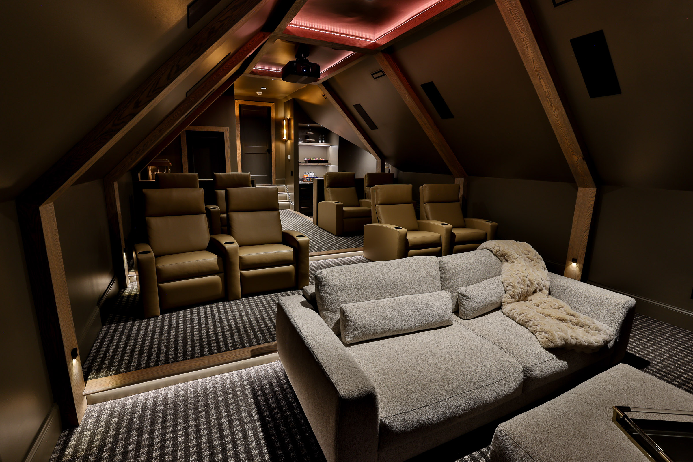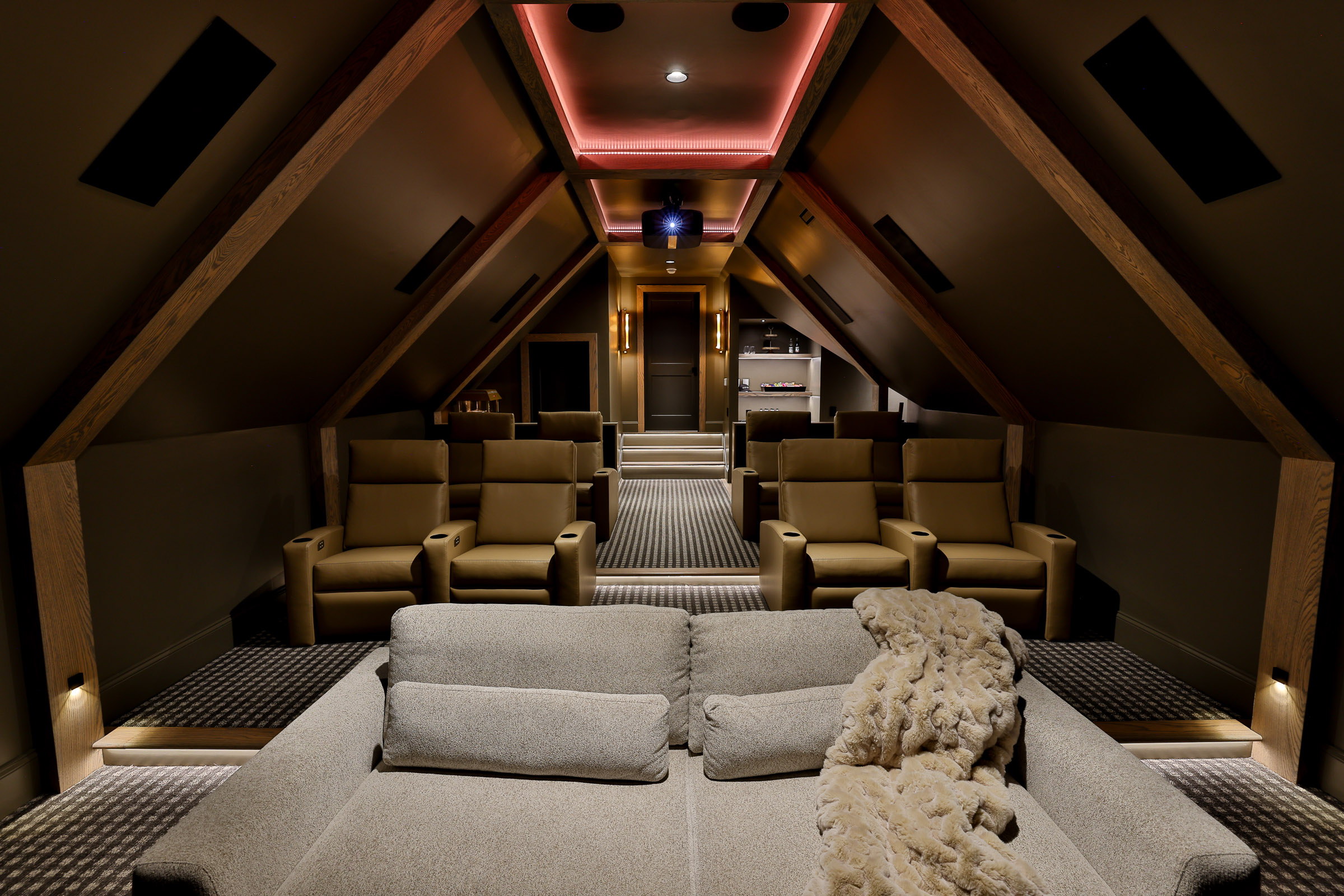 What began as a simple bonus room became a passion project for this couple—a cinematic sanctuary built on collaboration, creativity, and a shared love of great movies. From the first design renders (that friends mistook for real photos) to the final reveal, the process was seamless. Our clients were hands-on, inspired, and—by their own admission—blown away. The lighting. The sound. The craftsmanship. Every element surpassed expectations. And while they joke that they’d tell others not to call CO-DA so they can keep the coolest room for themselves, we’ll take that as the ultimate compliment.