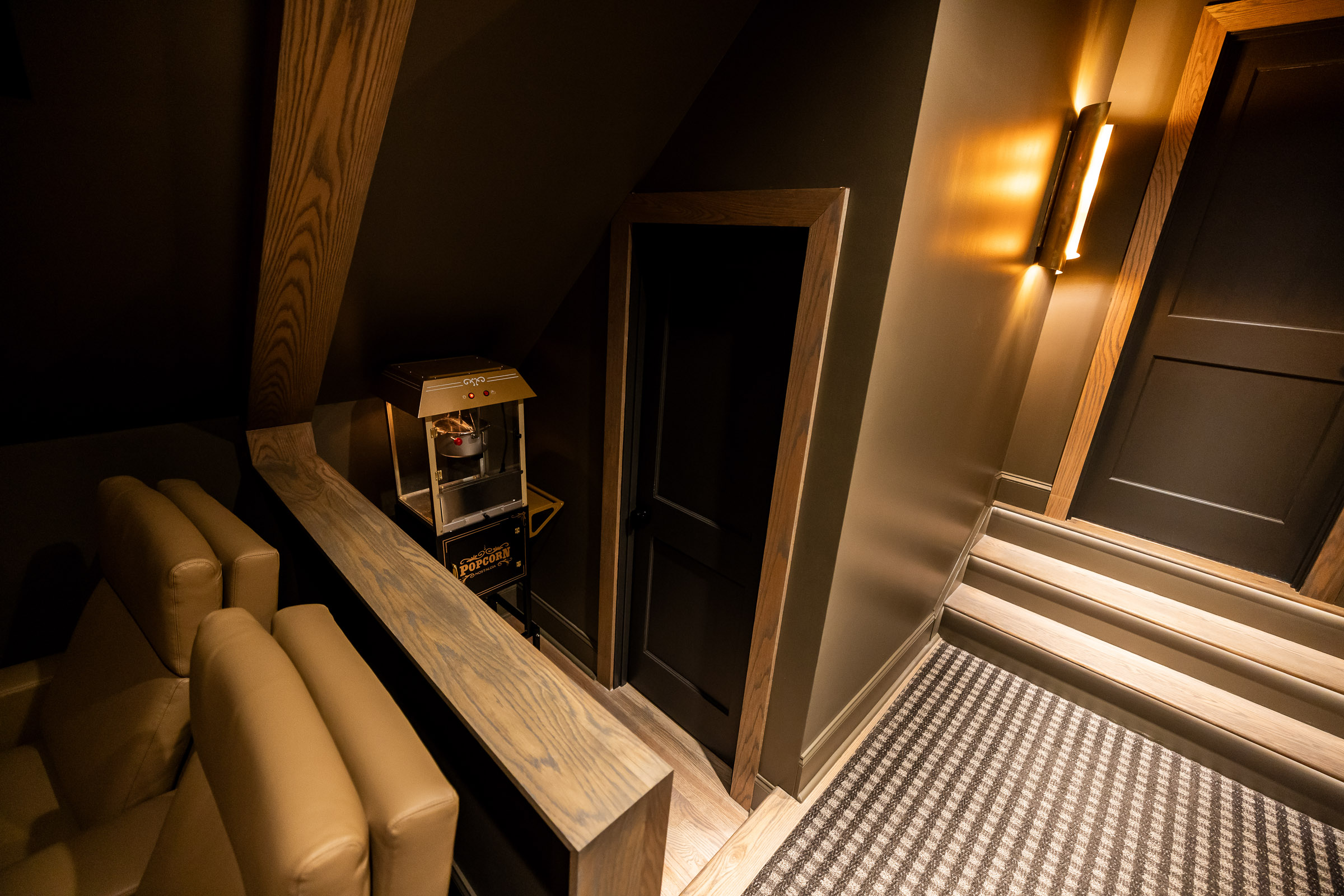 Of course, it’s not just about sight and sound—it’s about the full experience. We installed luxury theater seating, a dedicated snack and bar area, a classic popcorn machine, and integrated LED accent lighting to set the mood just right. Every detail was thought through—from tech to trim—to bring this dream theater to life.