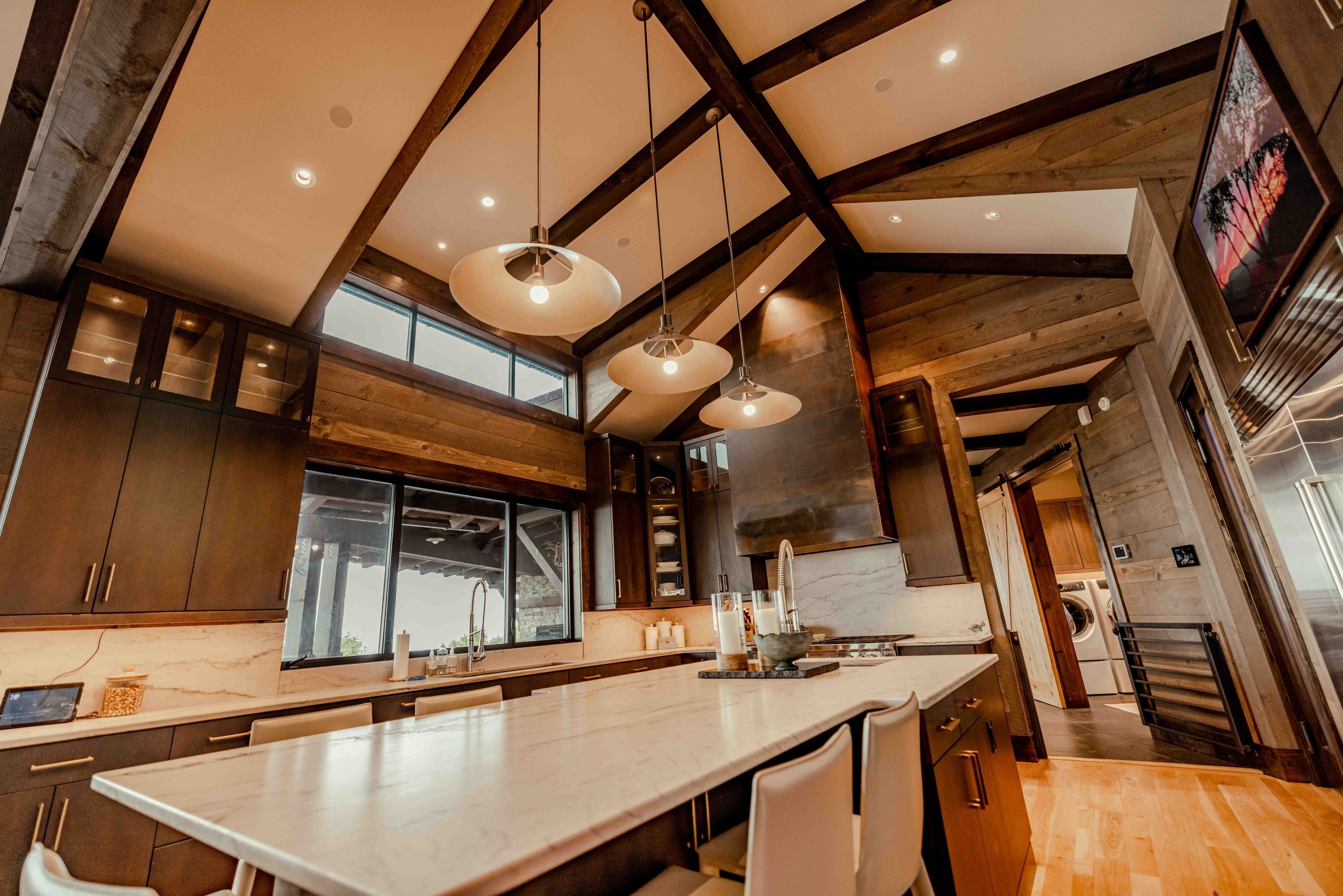 Every inch of this home was designed to enhance the experience of mountain living through seamless automation and discreet tech. A full Savant control system drives the user experience, from lighting and shading to audio, video, and security. Accent lighting, integrated via DMX control with Zaniboni fixtures and Savant DMX Pro LED strips, creates ambiance that adapts to the time of day—or the homeowner’s mood.