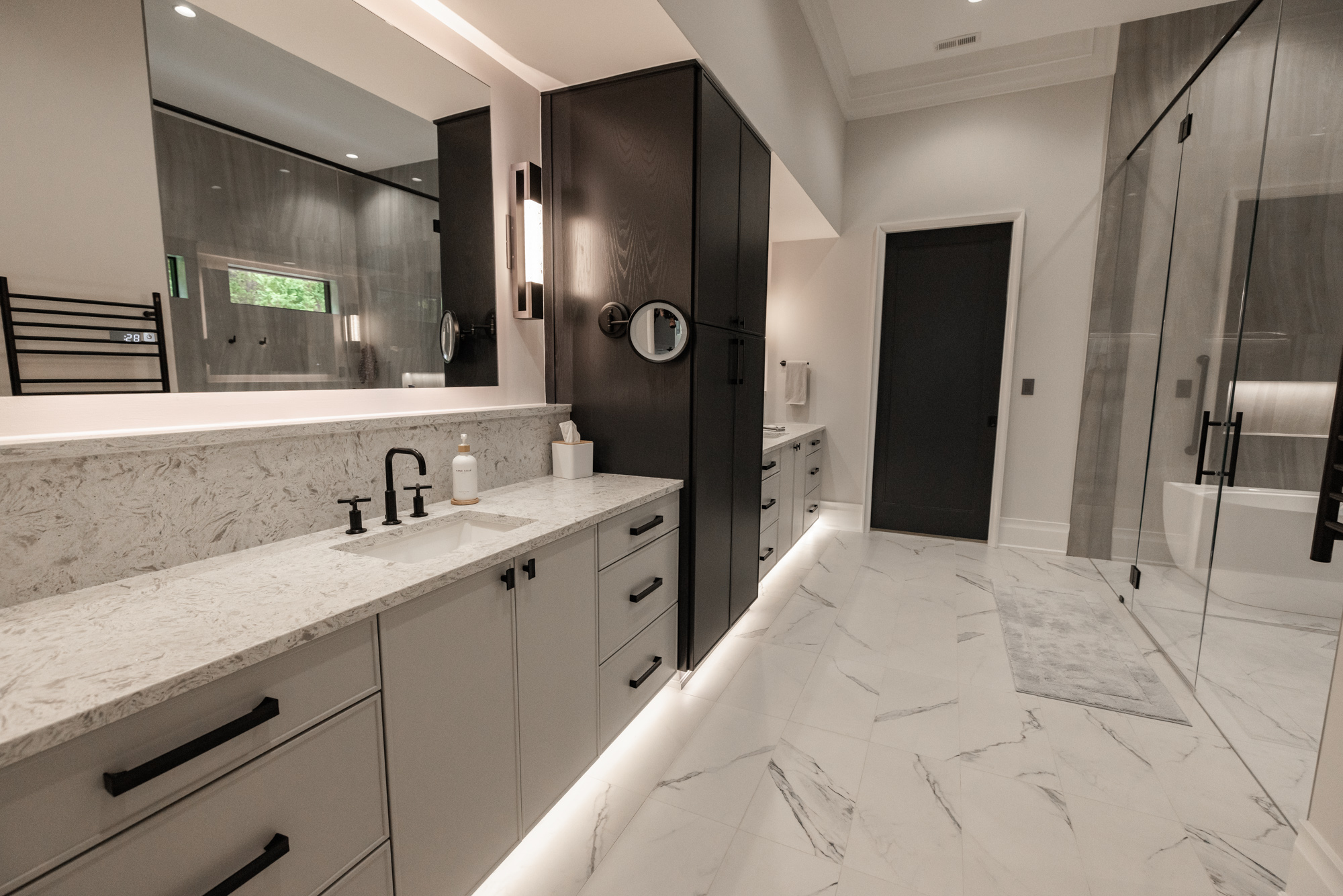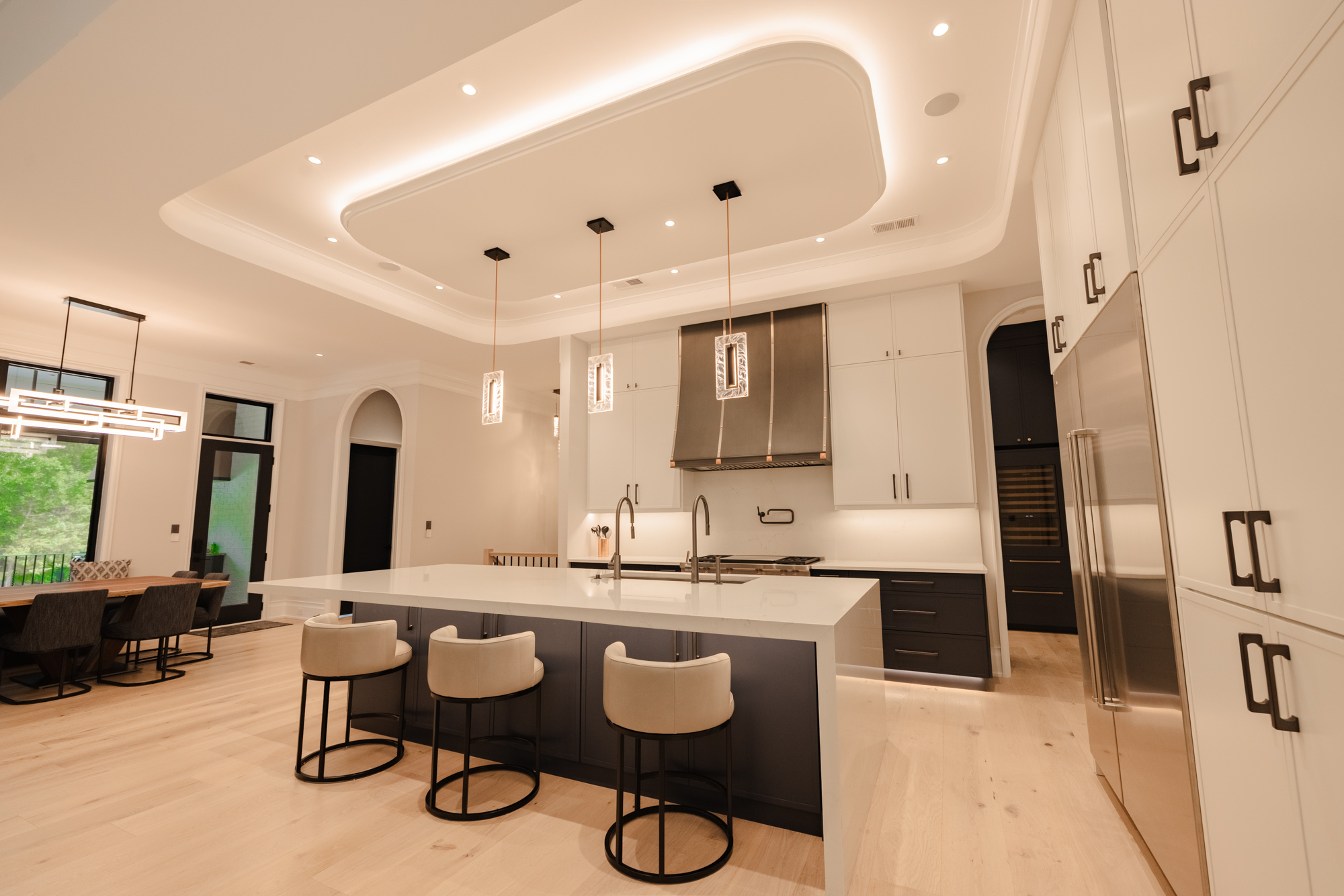 At the heart of The Strata Estate is a Savant Pro system—a single interface that unites lighting, shades, climate, audio, video, and security across the entire home. From tailored “Good Morning” scenes to mood-setting evening ambiance, control is intuitive, responsive, and always within reach—via touchscreen, remote, or mobile device. With 20 motorized shades, panelized lighting, and elegant keypad interfaces, the home adjusts itself to our client’s lifestyle, not the other way around.